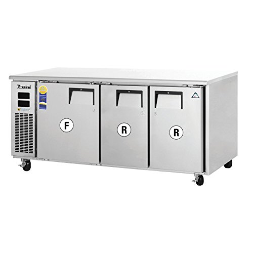 Everest Refrigeration ETRF3 Undercounter Refrigerator/Freezer Combo will help your job easier dexUndercounter Refrigerator/Freezer Combo three-section 14 (refrigerator) & 8 (freezer) cu. ft. cap. (6) shelves side mounted refrigeration system digital control system adjustable self-closing doors 304 s/s interior & worktop 430 s/s exterior (4) 4" diamet