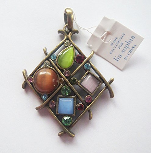 Lia Sophia Jewelry Montage Slide in Antiqued Gold RV will help your job easier dexSlide features sparkly multi-color Cut Crystals and Cat's Eye stones in an antiqued gold-tone setting. The slide measures 2 1/8" in length including the bail. 1 1/2"x2 1/8"