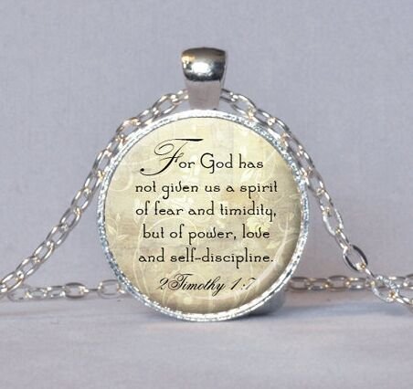 Long silver Christian Scripture Necklace - 2 Timothy 1:7 bible quote will help your job easier dexFor those who love sacred geometry jewelry, this 1 inch (25 mm) religious pendant will be a great accessory and a gift.