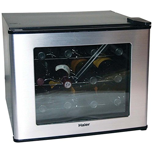 Manufacturer Refurbished Haier HVTM12BSS 12-Bottle Wine Cellar Fridge, Stainless Steel will help your job easier dexThe Manufacturer Refurbished Stainless Steel Haier HVTM12BSS 12-Bottle wine cellar is a great choice for most any wine lover. Big enough for guests and space conscious enough to stay out of the way. Sits great on the floor, counter-top or behind the bar. This Hiar HVTM12BSS 12 bottle wine cellar features its own adjustable thermostat to set appropriate cooling temperatures. So stocking up your the kitchen or home bar with your favorite vineyard treasures in this elegant, compact 12-bottle Freestanding Wine Cellar will be a snap. Its adjustable manual controls let you keep up to 12 bottles of red or white wine on hand and at optimum temperature. The Haier HVTM12BSS 12-Bottle wine cellar with ultra-quiet thermoelectric cooling system creates a vibration-free environment for your wine, and the small size and space-saving recessed door handle make this model a perfect countertop fit. - Adjustable temperature control with easy-to-read blue LED display - 3 full-width chrome storage racks provide ample room to securely store up to a dozen bottles in style - Soft interior light gives you a clear view when searching your collection - Double pane mirror glass door protects wine bottles and adds an elegant touch Services\n