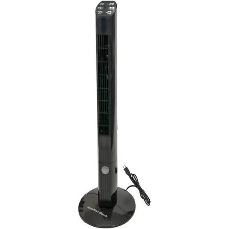 Tower Fan with Remote Control, Black will help your job easier dexThe Hamilton Beach 42" Oscillating Tower Fan has three speed settings. It operates with a remote control. This tower fan has seven timer settings from one hour up to seven hours.