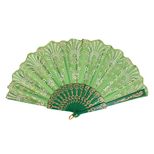 uxcell Nylon Chinese Style Flower Pattern Dance Party Folding Hand Fan Green will help your job easier dex
