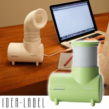 IDEA Mini-ELEFAN Green (Green) will help your job easier dexShaped distinctively like an elephant trunk that's been turned into an air duct, this imaginatively designed fan is not for nothing called the Mini-Elefan. Its noozle can be pulled out and directed to where you want the air circulation to flow, creating a unique classy designer look married with industrial functionality. ● Flexible duct blower system different from the conventional desk fan with a traditional feather ● It's unique ultra-small circulator design that matches at office usage. ● Available by connecting to a PC or USB power outlet. AC-USB adapter is an optional. ●The bellows type flexible neck orientation, it can be adjustable the angle in a wide range. ● Sufficient air flow yet tabletop fan ● It is easy to be cleaned internal removable filter and sponge. ●In aroma attachment, enjoy the wind with fragrance. Coming in three choices of smart colors, the Mini-Elefan also comes with a special aroma stand that you can clip over the USB-powered fan to waft therapeutic smells around your room. There is even a small ball included too so you can watch the wind flow keep the object levitating in the air!