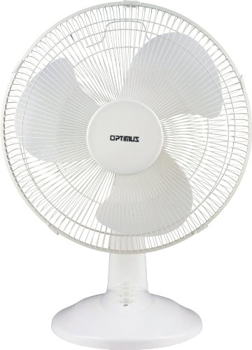 Optimus F-1630 16-Inch Oscillating 3-Speed Table Fan, White will help your job easier dexOptimus 16 inch oscillating 3 blade table fan includes 3-speed adjustments for energy savings and a whisper quiet motor when in operation. 4 position push button switch: Off, Lo, Med and Hi located on the base of the fan. Includes adjustable tilt and angle head for vertical settings. Provides full room 90-degree oscillation for excellent coverage. No tool assembly required and the powder coated safety grill is easily removable for cleaning.