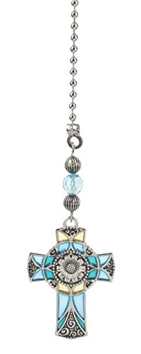 Blue Stained Glass Cross Fan Pull by Ganz will help your job easier dexExpertly Cast Metal Cross Shaped Fan Pull With Colorful Stained Glass Windows.; Designed For Easy Attachment To Ceiling Fans or Lamp Pull Cords, Etc; Finely Detailed Charm Is Pleasing To The Eye Wherever It Hangs; Heavy Duty, 10-1/2 Inch Ball Chain with Female End; Charm Measures Approximately: 1-1/4 Wide x 2 Tall (Inch);