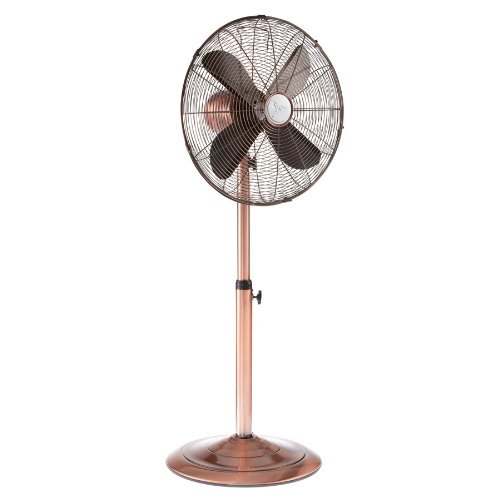 Deco Breeze Brushed Stainless Steel Floor Standing Fan with Copper Finish will help your job easier dexDeco breeze brushed stainless steel floor standing fan with copper finish. Adjustable height, 16-Inch fan head. Decorative and functional oscillating fan with a whisper-quiet 45 watt motor. Three-speeds - low speed is 900 rpm; the medium speed is 1100 rpm; the high speed is 1280 rpm. One year limited warranty.
