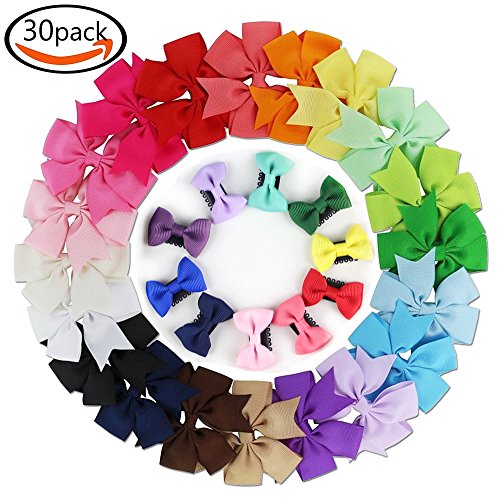Goodlucky365 20Pcs Baby Girl Headbands Grosgrain Ribbon Boutique Hair Bows Alligator Clips and 10Pcs Tiny Solid Hair Bows Clips Barrettes for Little Girls Baby Girls Toddlers Pigtails will help your job easier dexA total of two groups, one group of 20 color design, the design of a group of 10 color, different color different styles can be applied to any place you need to go to.