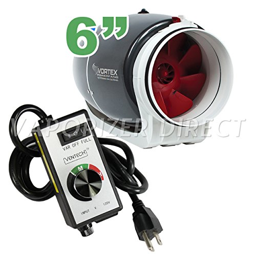 6" inch Vortex S Line S-600 Power Fan 347 CFM by Atmosphere + VenTech Variable Fan Speed Controller will help your job easier dexVortex S Line Powerfan The S-line is a revolutionary series of fans that combine energy efficiency, ultra-quiet operations and a collection of advanced technologies that deliver unparalleled performances. An extremely energy efficient AC brushless motor powers the patented mixed-flow dual impellers. Built with double insulated walls, noise is reduced to levels that were previously thought to be unattainable. All S-Line models are assembled with high impact resistant polycarbonate casings, an integrated back draft damper and a mounting bracket designed for quick and easy installation. VenTech Fan Speed Controller The VenTech Speed Controller is an electronic circuit with the sole purpose to vary an electric motor's speed, just like those in your duct and inline fans. This router speed controller works with any universal AC/DC brush-type motor. The controller features a 3 - way rocker switch with high, medium or low options.