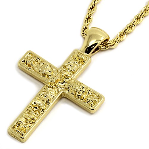 Mens 14K Gold Plated Nugget Cross Pendant Hip-Hop 3mm/24" Rope Chain will help your job easier dexColor:Gold Plated, Style:Pendant, Length (inches): 24 Inches, Metal:Alloy, You will receive 1 Pendant & 1 Chain, This Pendant Is Top Quality On The Line With Best Prices
