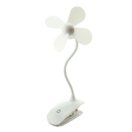 Niceshop Portable mini USB Clover Rechargeable Cooling Replenishment Fan Powered by Touch switch Rechargeable clip adjustable Fan (White)