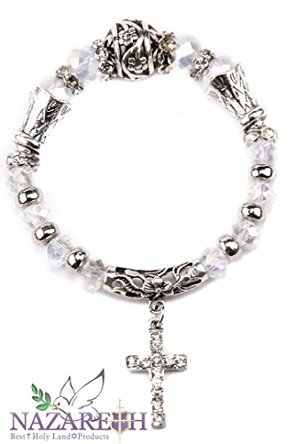 Silver Plated Catholic Bracelet with Clear Crystals & Cross Stretchable Ornament will help your job easier dexBeautiful Design Silver Plated Charm Bracelet With Cross Crucifix Covered in Zircon Crystals and Transparent Clear Crystals, Handmade From Jerusalem Holy Land . A Great Gift for Family Members and Close Friends.