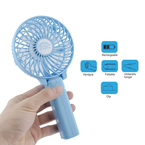 Wooboo Portable Mini USB Fan Rechargeable Personal Handheld Fan Foldable Battery Operated / USB Powered for Home and Office (Blue)