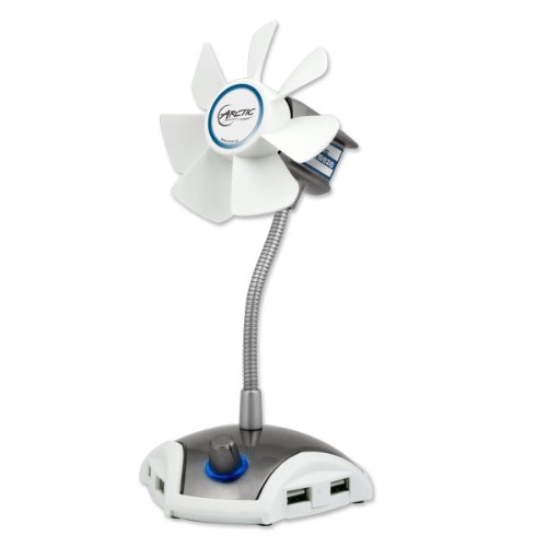 ARCTIC Breeze Pro, USB-Powered 92mm Desktop Fan, Adjustable Fan Speed and Blowing Angle, 4-Port USB Data Hub - Silver/White will help your job easier dexARCTIC Breeze Pro is a USB-powered desktop fan with adjustable fan speed between 800 to 1800 rpm and an integrated 4-port USB 2.0 data hub. ARCTIC Breeze Pro is designed to deliver gentle breeze to you and your immediate personal workspace quietly without overwhelming wind tunnel-type noise creating unnecessary distraction. ARCTIC Breeze Pro is ideal for areas sensitive to noise such as library, study hall, office cubicle and, meeting room or just a quiet evening at your own living room, constantly delivering gentle breeze circulating the air without overbearing fan noise. You can easily adjust the fan speed from 800 to 1800 rpm for the most comfortable air flow with the simple RPM control. The flexible yet durable gooseneck allows you to adjust ARCTIC Breeze Mobile easily for the best blowing angle. The sturdy base of ARCTIC Breeze Pro not only keeps the unit steady, a 4-port USB 2.0 data hub is also integrated into the base so you may conveniently transfer files from/to your flash drives, power up USB speakers or charging low-power USB devices such as Bluetooth headphone. We recommend charging your power-demanding smartphones and tablets using factory original charger or dedicated USB wall charger for the ideal power performance. ARCTIC Breeze Pro is a great year-round desktop companion delivering continuous refreshing and comfortable breeze quietly. ARCTIC Breeze Pro comes with a 2-year limited warranty.