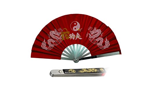 Tai Chi Red Metal Steel Kung Fu / Wushu Martial Arts Fighting Fan Dragon NEW will help your job easier dexThis metal Kung Fu fans with steel bars attached to nylon fabric. Each fan bears a symbolic pairing of the dragon together with a Chinese characters for Kung Fu. The folded height is 14.75". When opened the width is approximately 27 1/2''. Opens with popping sound. Please note that this weapon is for practice and performance only, not for actual combat. War fans were used in Japanese feudal warfare, of varying size and material for different purposes. This fan holds Historical Japanese references as well as an illustrated tribute to two mythical figures in Japanese folklore. The wingspan extends to 27.5" with a 14.75" length when opened. This fan is an accurate assessment of Japanese history and a perfect gift for any collector.