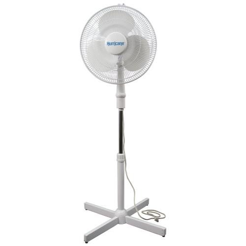 Hurricane Stand Fan, 16-Inch will help your job easier dexHurricane 736507 Supreme Oscillating Stand Fan 16 inchWhether you're looking to air out your home office or cool yourself down at work, the Hurricane 736507 Supreme Oscillating Stand Fan 16 inch offers you an easy way to get ventilation anywhere. The stand design puts the blades at the perfect height to cool anyone off or vent areas of odors. 90 degrees of oscillation give it extra coverage - more than even most other oscillating fans. 90 degree oscillationOscillation helps to provide extra cooling compared to other fans. The oscillating stand design blows air more quickly across a greater area so that the whole room gets coverage. 90 degrees of oscillation give you more coverage than most other oscillating fans. If you need specific ventilation, the fan can be locked in a non-oscillating position. Adjustable heightMake sure your ventilation is reaching exactly the spots it needs to. This fan has an adjustable height, letting you set it anywhere from 41" to 55". This gives you extra convenience and flexibility compared to most other fans. Powder coated steel grillAdding a layer of durability and reliability to this fan, the grill covering the blades is made of powder coated steel. This protects the fan from being damaged by any objects as well as preventing any accidents or injuries. It helps to keep the fan in good operating condition for a long time. 3 speeds 90 degrees of oscillation Modern design with white finish Powder coated steel grill Stand fan design Adjustable height 3 speedsWith 3 different speeds, you can easily tune this fan to get the perfect ventilation no matter the situation. If you just need a pleasant, quiet breeze, use the low setting. The high setting is great for those hot days in the shop or for quickly clearing odors out of an area. Stand fanThe stand design offers a variety of advantages over other types of fans. It can be placed just about anywhere where there's a bit of floor space and puts ventilation at the right height e