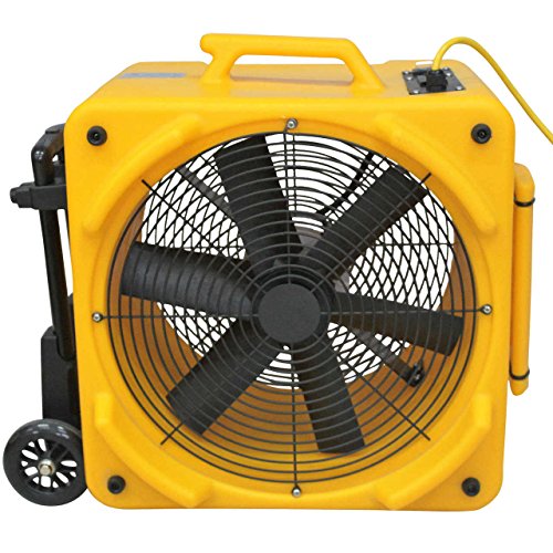 Zoom Axial Floor Dryer 1/4 HP with Handle and Wheel Kit will help your job easier dexZoom Axial Blowers have GFCI power outlets for daisy chaining with other axial fans, these blowers draw such a small amount of amps, that you can plug several units into each other and run them off of the same electrical outlet. All of our low amp draw flood water fans are great for the restoration industries because of the low power draw. This specific model only pulls 3.4 amps while running on its highest speed. That means that you can run 4 units off of a typical 15 amp outlet without worry. These axial air movers can be used to blow air in several directions. The built-in feet have an adjustable height feature that allows it to be used at a level horizontal angle or to be positioned at a downward 6° angle for a more concentrated airflow. This model come with optional and convenient handle and wheel kit. Features: Low amp draw allows for multiple units to run off of the same power outlet. With 2 GFCI outlets built in, you can power multiple things, as long as the total amp draw is less than 12 amps. Adjustable feet allow for different height settings which can concentrate the fans airflow down to the ground. Can be stacked 3 tall when stood upright, and up to 5 units high when placed on its side. The extra long power cord helps to dry large areas by being able to place a fan every 25'. ETL Safety Listed Optional Handle and Wheel Kit Included