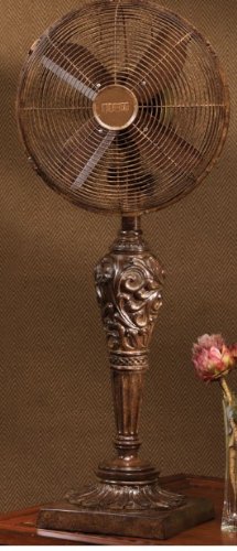 12" Oscillating Table Fan - Cantalonia ornate classic styling resin will help your job easier dexThe Cantalonia puts a sultry spin on the classic table fan, with its European flair and sophisticated vibe. The three speed metal fan provides just the right amount of cooling breeze, while the ornate and finely "carved" base affords old-world style and grace. You can easily imagine the Cantalonia table fan adorning a palazzo in the south of Spain, fitting perfectly in a brownstone on the east side of New York-or anywhere in between.