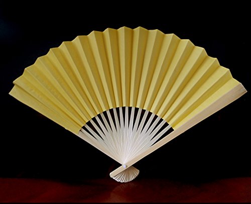 Quasimoon 9" Yellow Paper Hand Fans for Weddings (10 Pack) by PaperLanternStore will help your job easier dexThese beautiful wedding paper hand fans can be used as the perfect functional gift or party favor for your reception, banquet, prom , birthday party, family reunion, picnic or other event celebration . Along with being very decorative, PaperLanternStore's chinese fans are simple, elegant, traditional, handy and are one of our most popular products we carry.