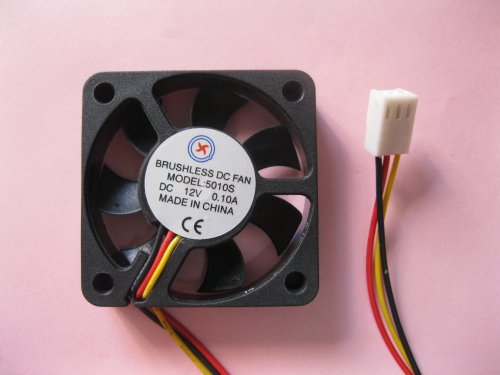 - 50x50x10mm, 12V, 0.1-0.2A, 3000 RPM (speed), 9CFM(airflow), 24dBA(noise)