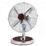 OPTIMUS F-8121 12" OSCILLATING FASHION TABLE FAN will help your job easier dex* Heavy Duty Metal Blade * 3 Speed Energy Saving/ Whisper Quite Operation Motor * 4 Position Rotary Switch (Off, Lo, Med and Hi)* Full Room of Directional 90 Degree Oscillation * All Metal Construction * Convenient Carrying Handle * Color: Chrome with Red Wood Finish Accent * ETLus Listed