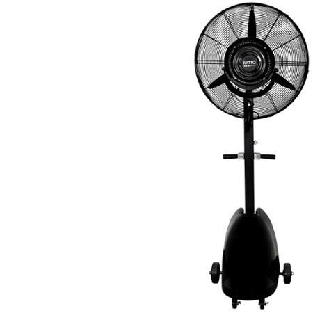 26" Commercial 3 Speeds Misting Fan, Black will help your job easier dexDesigned specifically for commercial, industrial and agricultural applications, the Luma Comfort MF26B 26" Commercial Misting Fan can cover an area of 1,000 sq ft. It can lower ambient air temperatures by as much as 30 to 45 degrees Fahrenheit. This heavy-duty misting system is constructed of heavy-gauge, anti-corrosive metal. This heavy-duty fan has a 4.4-gal water capacity, which allows up to five hours of consecutive run time before refilling is necessary. Thanks to the oscillating fan head, this product can cover a wide radius effectively. Fastened atop rolling casters, this Luma fan is easy to move on a smooth surface, making it an ideal choice for many work environments. The adjustable misting flow allows you to control how moist the air will be, while with three different fan speeds control cooling level.