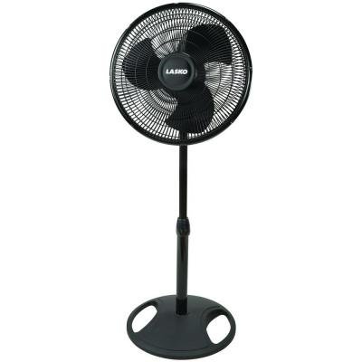 Lasko, 16 In. Oscillating Stand Fan in Black Fully-adjustable Height
