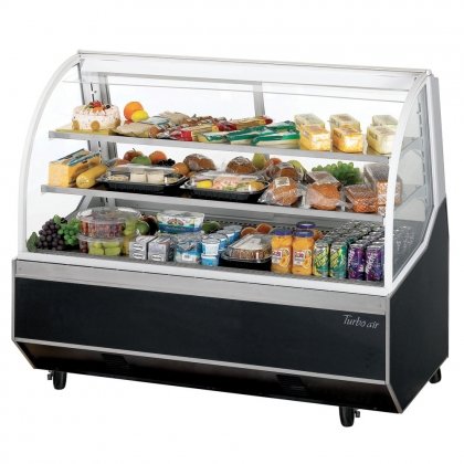 Turbo Air TD5R 60" Deli Case with High Density PU Insulation Sloped Rear Doors Cantilevered Wired Shelves 5" Casters Independent Shelf Lights and Frameless will help your job easier dexAn elegant and stylish deli case can be hard to find Take a look at this beautiful Deli Case from Turbo Air Keep your baked items preserved and ready for sale