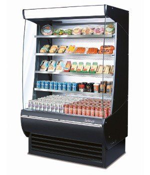 Turbo Air Deep Open Display Merchandiser TOM-60-DX will help your job easier dexExtra Deep Vertical Open Display Merchandiser, 60"L, LED interior lighting, LED advertising top panel, open front, glass front shield and side walls, 300 s/s interior, non-peel anti-rust exterior coating, automatic self-cleaning condenser, energy saving night curtain standard, optional security cover, self-contained, plug-in installation, front air intake & rear air discharge, (4) adjustable s/s shelves, black exterior, R-404A, 115v/60/1, 1 HP, 16.5amps, NEMA 5-20P