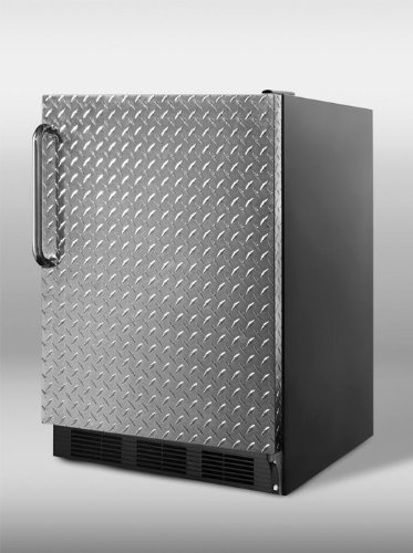 Summit CT66BBIDPL: Built-in undercounter refrigerator-freezer with cycle defrost, diamond plate wrapped door will help your job easier dexAccuCold by Summit Appliance offers a wide range of undercounter refrigeration for general purpose storage. The CT66JBI Series includes built-in undercounter refrigerator-freezers equipped with dual evaporator cooling for optimum storage conditions. Sized with a 24" footprint, the CT66BBIDPL can be used built-in under counters or freestanding. The interior offers over 5 cu.ft. of storage capacity. It has a black cabinet and diamond plate textured door in wrapped aluminum. A curved towel bar handle in polished stainless steel completes the industrial look. Inside, our unique dual evaporator system separately cools the refrigerator and freezer section to ensure proper storage temperature. Cycle defrost operation reduces user maintenance in the automatic defrost fresh food section, while the manual defrost freezer compartment can maintain zero degrees. Door storage provides easy access for tall bottles and small condiments. Additional features include adjustable glass shelves, a clear crisper, and automatic interior lighting. The CT66BBIDPL has long proven itself to have one of the best temperature performance records in the industry. To see additional finish options on this unit, browse the full CT66JBI Series.