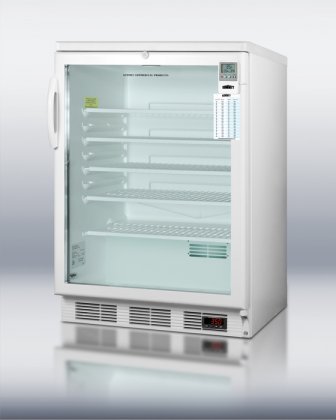 Summit SCR600LBIMEDDT 24" MedSeries Medically Approved Compact Refrigerator with 5.5 cu. ft. Capacity Interior Light Adjustable Shelves and Digital Thermostat in will help your job easier dexThe SCR600LBIMEDDT is a commercially approved 24 wide glass door all-refrigerator design for use in medical installations or laboratories It uses automatic defrost operation with an internal fan with gel packs for even cold air distribution It featur...