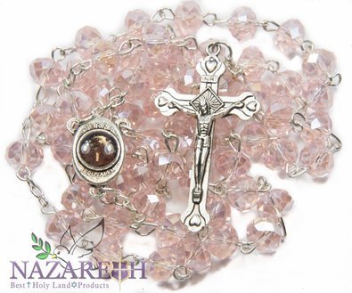 Why Use Catholic Light Pink Crystals Beads Rosary Handmade Jerusalem Necklace Jesus Crucifix ?