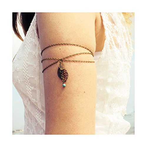 You buy Misscat Women Cut-Away Leaf Art Turquoise Beads Tassel Arm Chain Armband Armlet with Coupon : TELPX will be discounted 10%