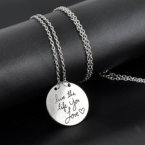 You buy LOVE THE LIFE YOU LOVE Love Heart Round Pendant Silver Metal Necklace Fashion with Coupon : TELPX will be discounted 10%