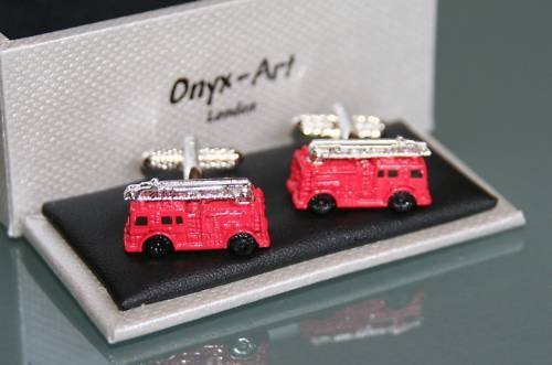 Onyx Art Men's Novelty Cufflinks - Fire Engine Fireman Gift