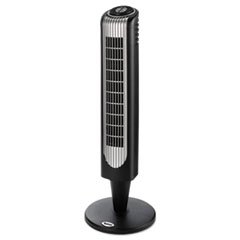 -- Oscillating Tower Fan, Three Speeds, Metallic Silver/Black