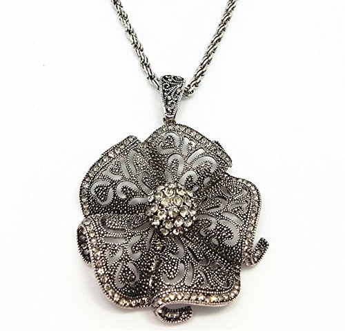 Qi Tian Flower Hollow Crystal Rhinestone Statement Choker Long Necklace Jewelry with Pendant for Women will help your job easier dexWonderful gift for you and your female friends