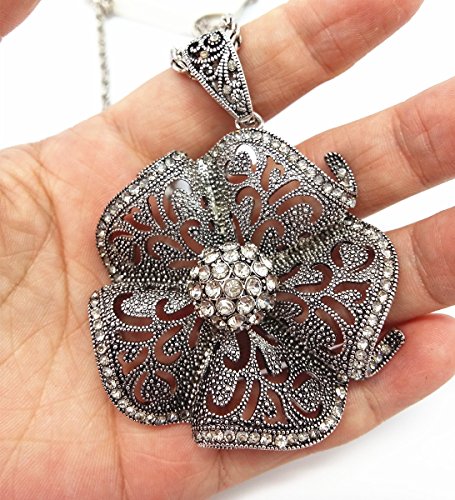 Qi Tian Flower Hollow Crystal Rhinestone Statement Choker Long Necklace Jewelry with Pendant for Women