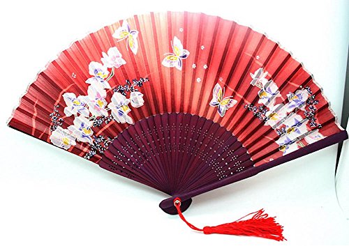 Why Use Red Chinese Bamboo Folding Silk Hand Fan Butterfly Flowers Pattern Wedding Party ?